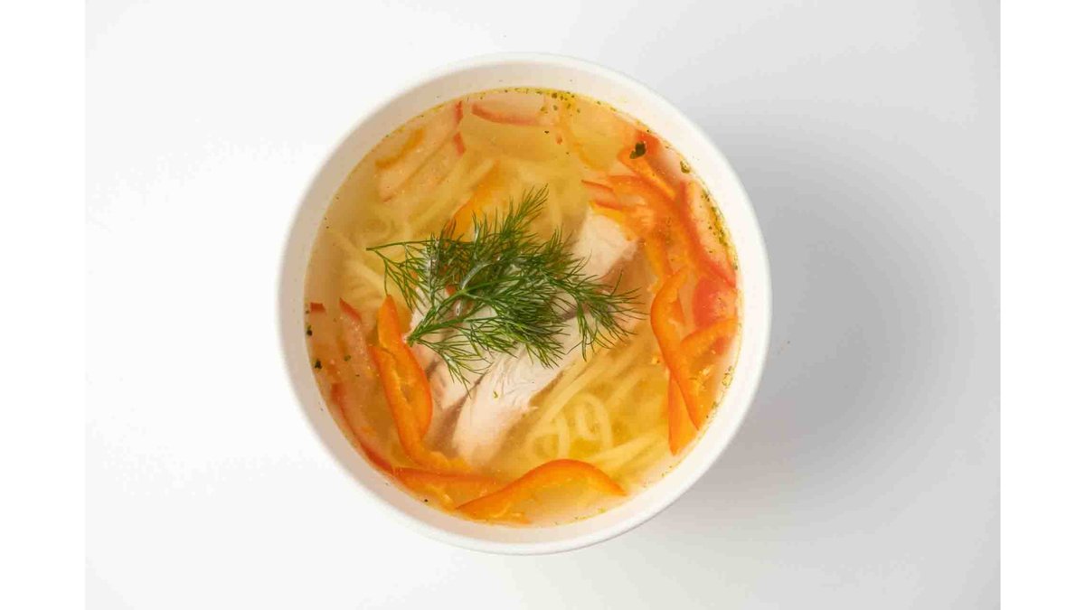 Прозрачный куриный бульон с ароматной домашней лапшой, отварным яйцом и свежей зеленью. Лёгкий и сытный, приготовлен по традиционному рецепту — для тех, кто ценит вкус настоящего домашнего супа