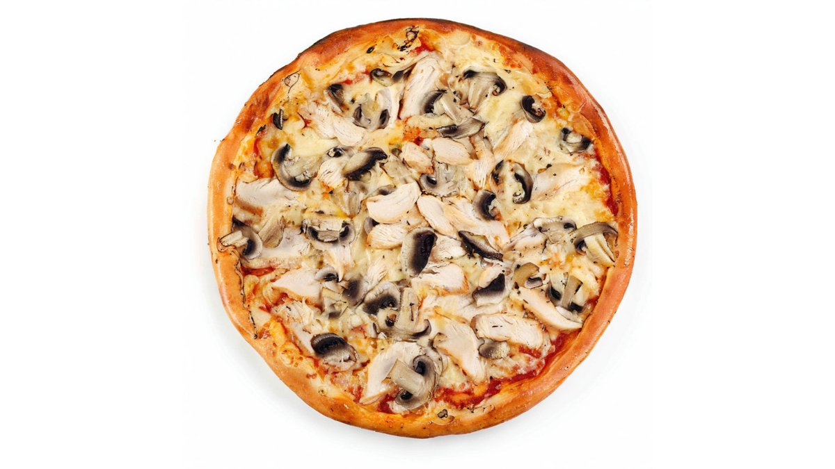 Пицца с курицей и грибами в соусе терияки — сочное филе, обжаренные шампиньоны и тягучий сыр на хрустящем тесте, всё это под сладко-солёным соусом с азиатским акцентом. Насытит и удивит.