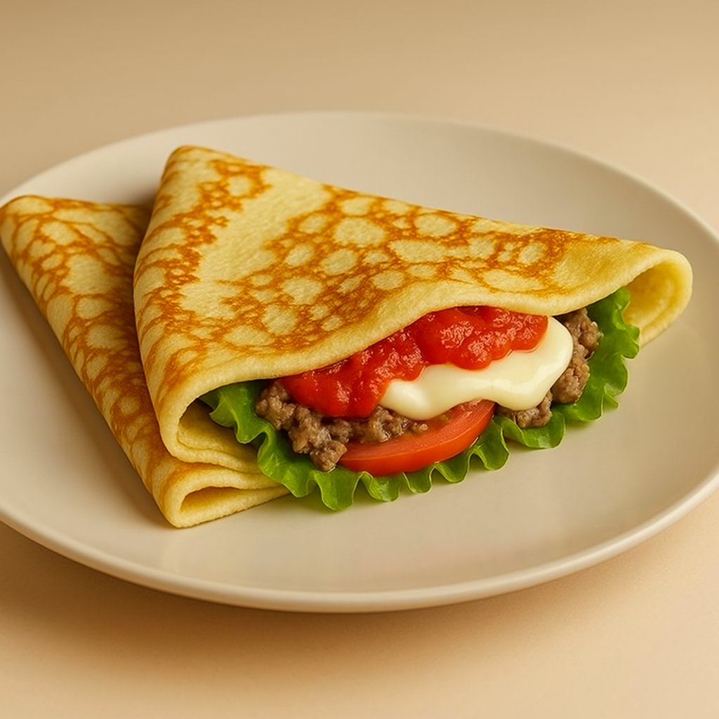 Блин с фаршем говядины, помидором, моцареллой и пицца-соусом
