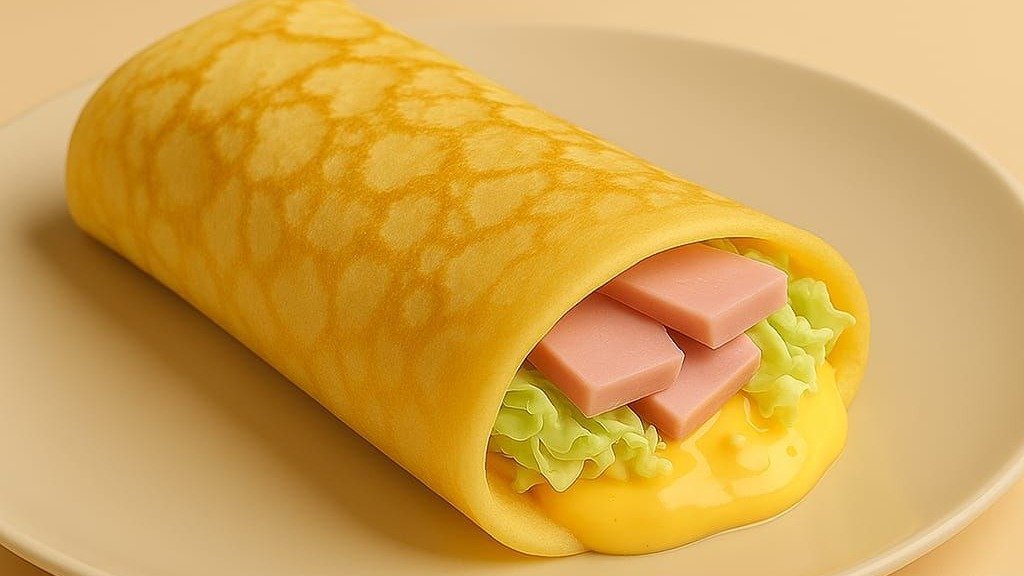 Блин с куриной ветчиной, сыром, пекинской капустой и сырным соусом