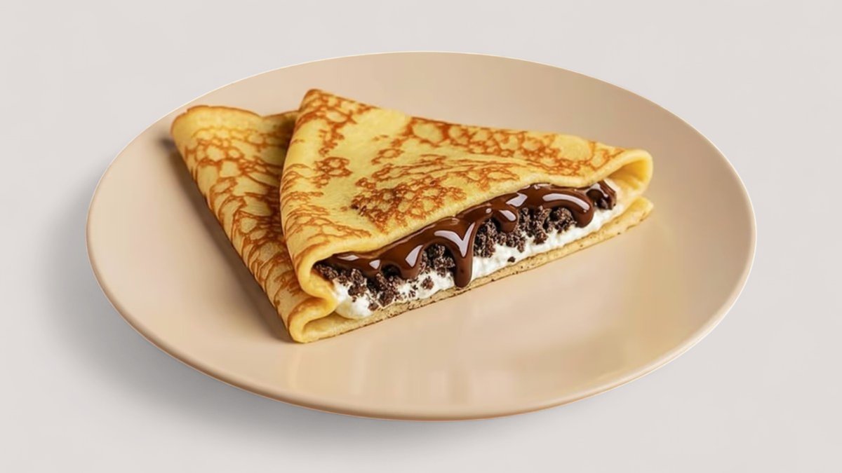 Блинчик с кремом на основе творожного сыра , с печеньем Орео и шоколадным топпингом.