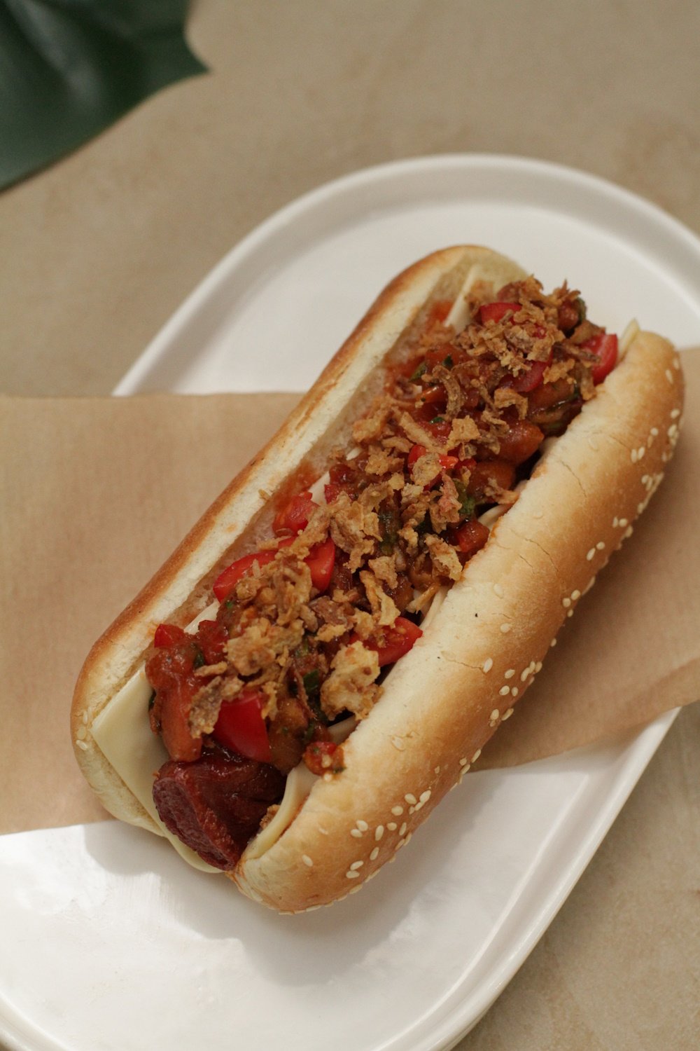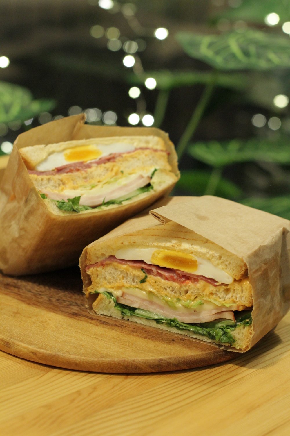 Поджаренная на гриле булочка бриошь, смазанная фирменным бургерным соусом и соусом ранч, лист салата, куриная котлета, свежие огурцы, помидор, сэндвичный сыр