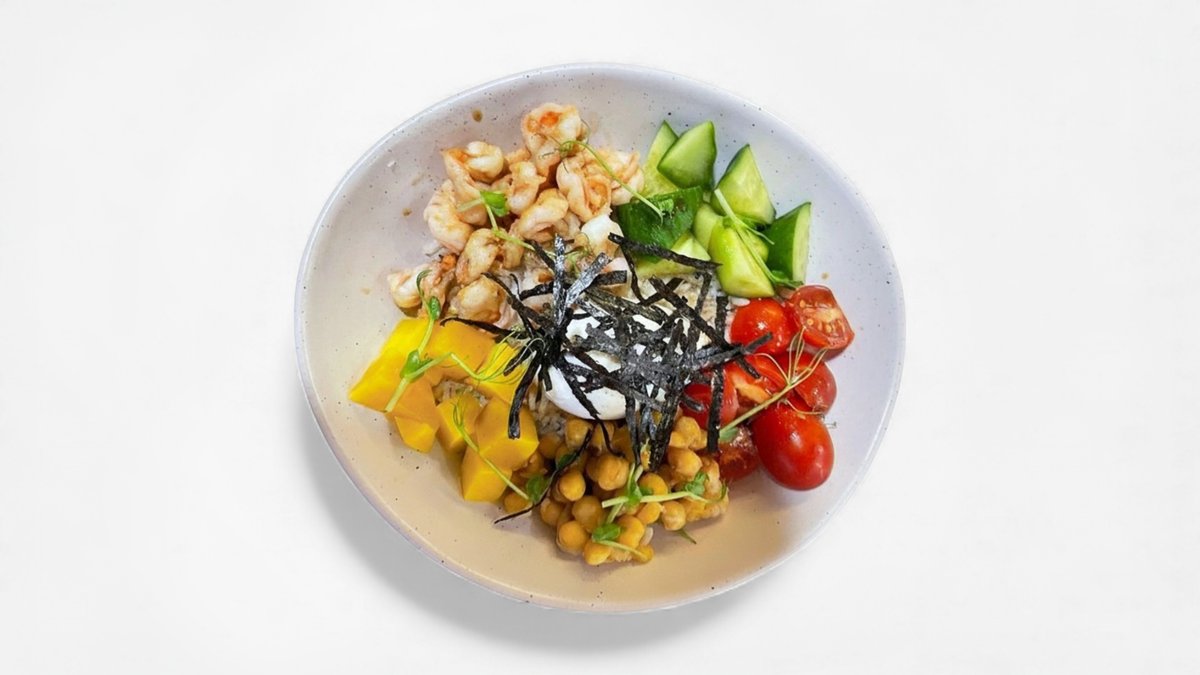 Лосось, рис, черри, фетакса, яйцо, шпинат, руккола, нори, огурец, ореховый соус