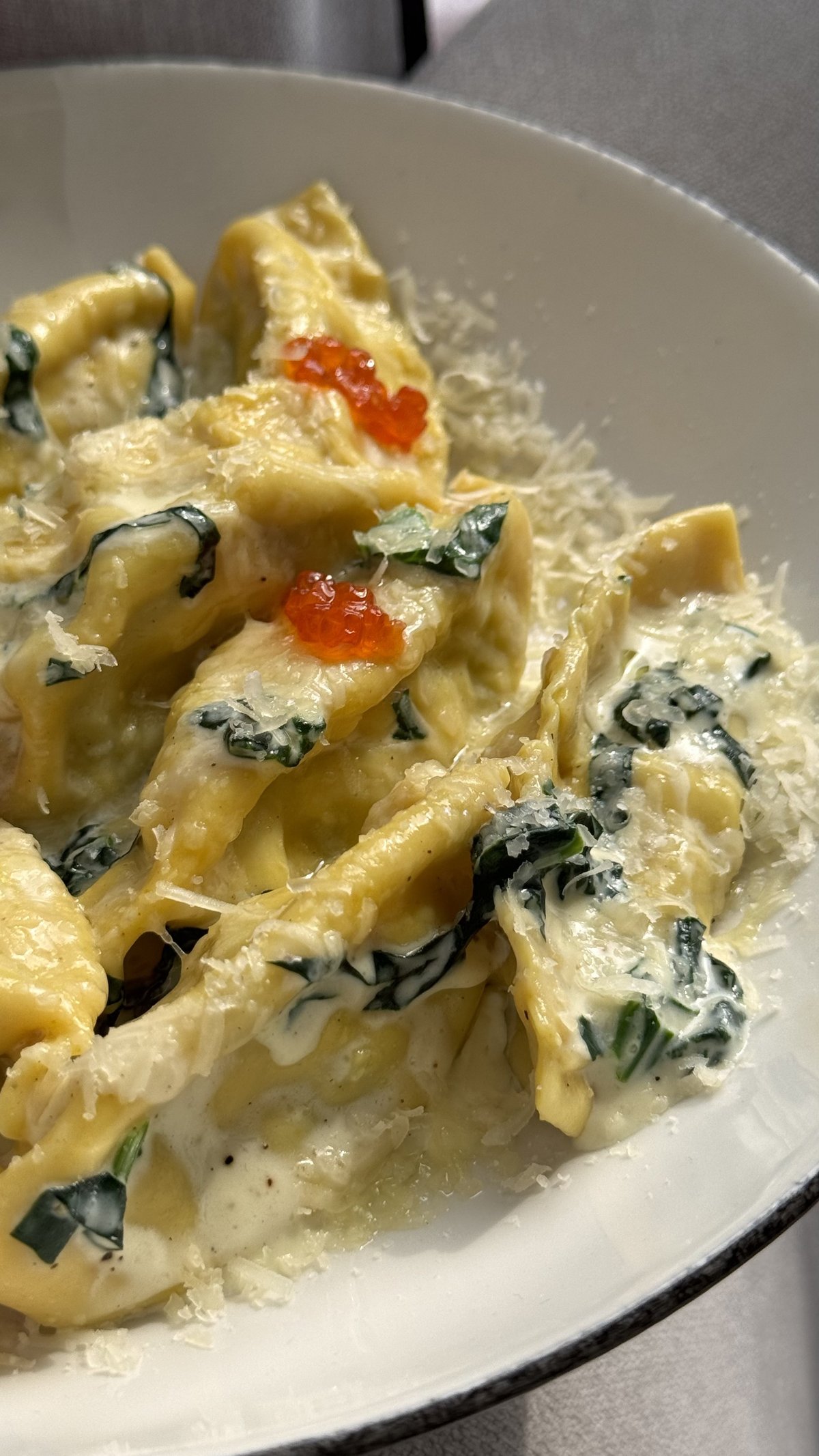 Паста fresca, креветки, кабачок, сливочный соус, пармезан