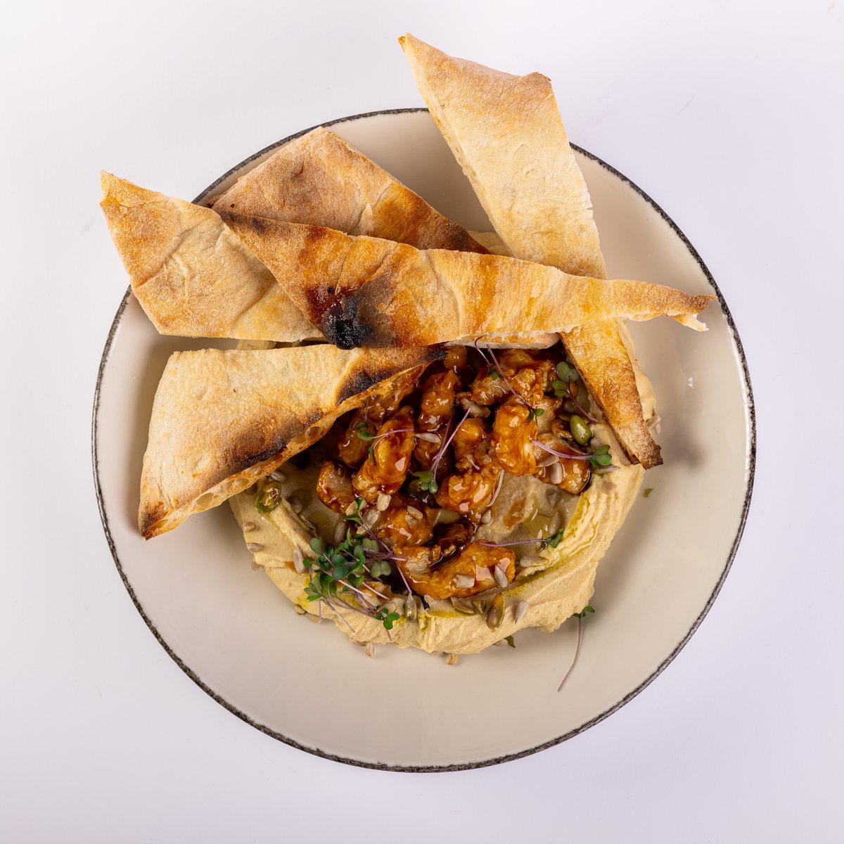 курица,яйцо пашот,микс салат,семечки кимчи,томаты,баклажан,соус sweet chilli