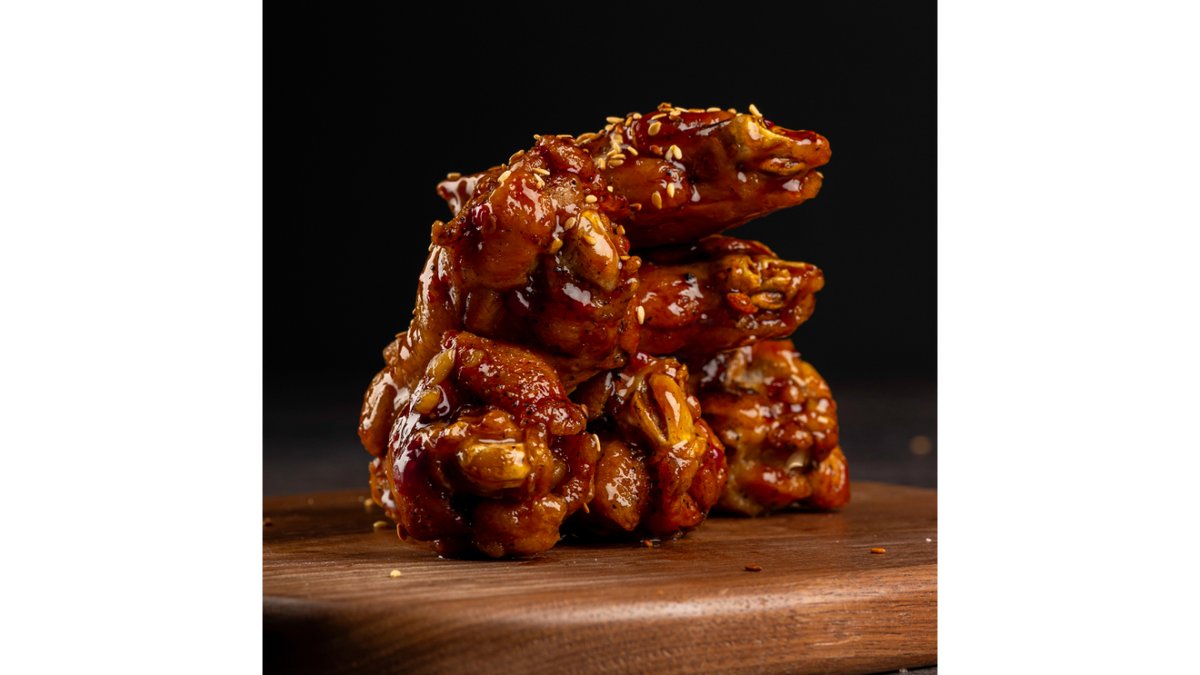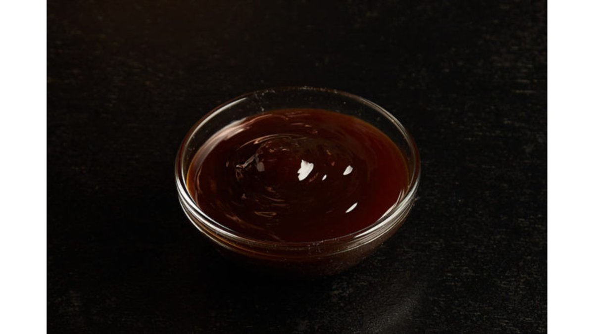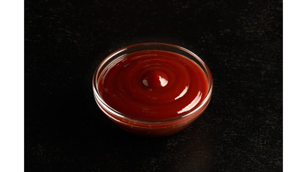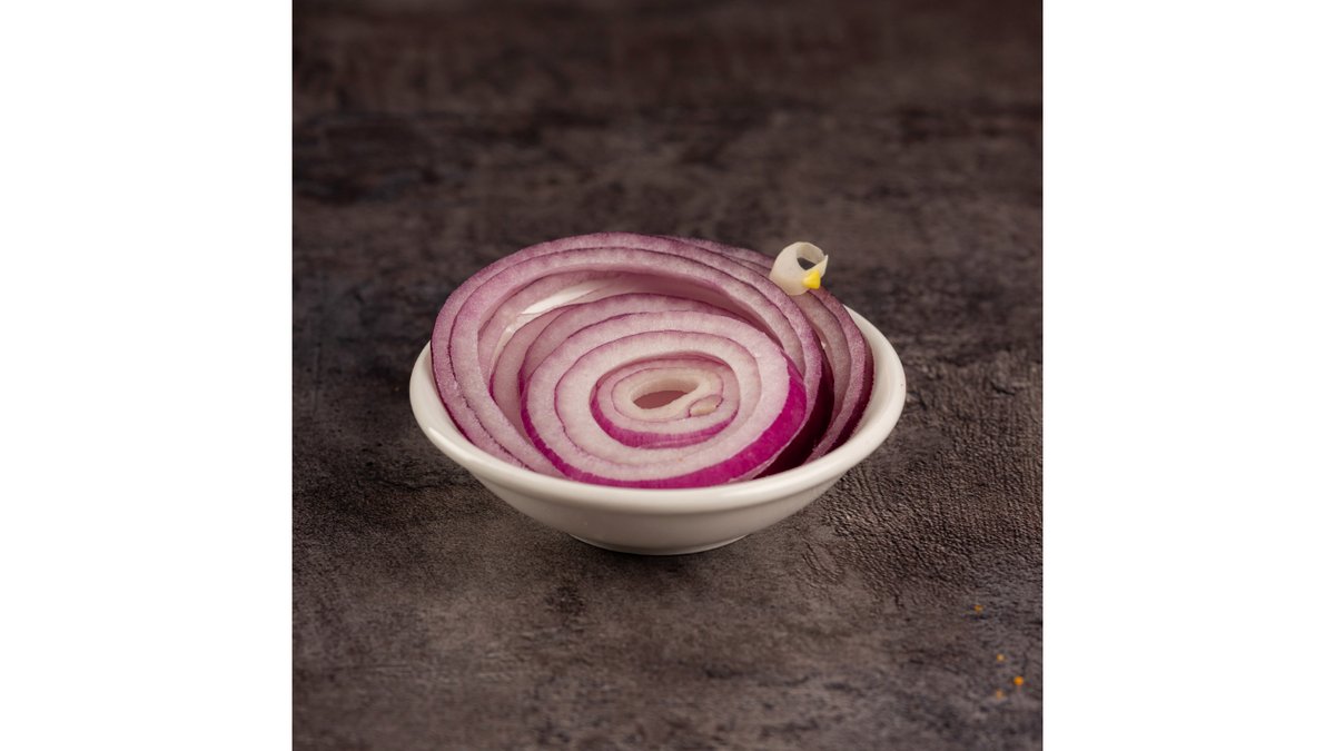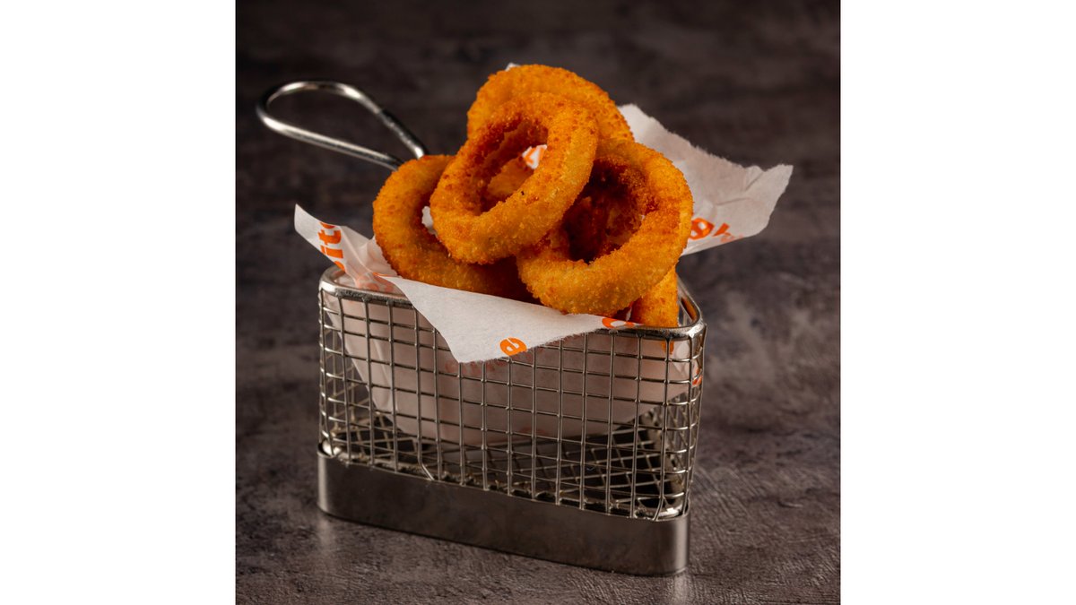 Булочка, куриное филе в панировке и в кисло-сладком соусе, красный лук, лист салата.