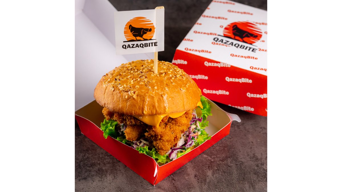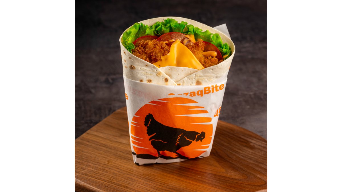 Булочка, куриное филе в панировке, соус, пикули, салат клоу-слоу, сыр чеддер.