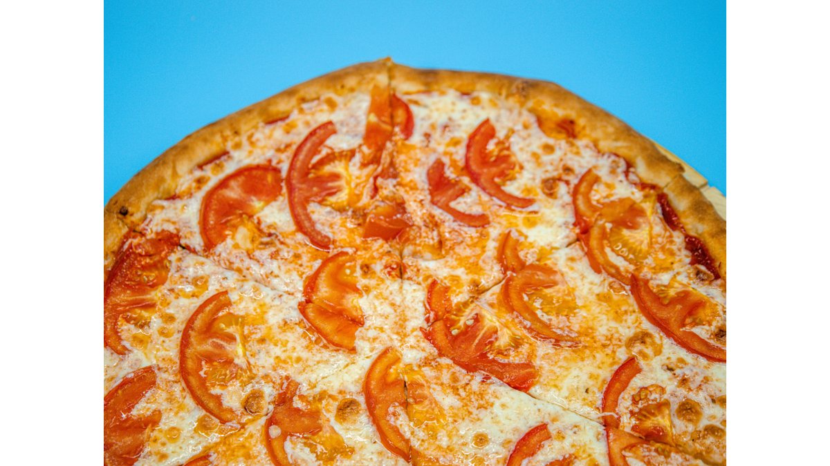 Тесто, соус, моцарелла, копченая курица и помидоры.