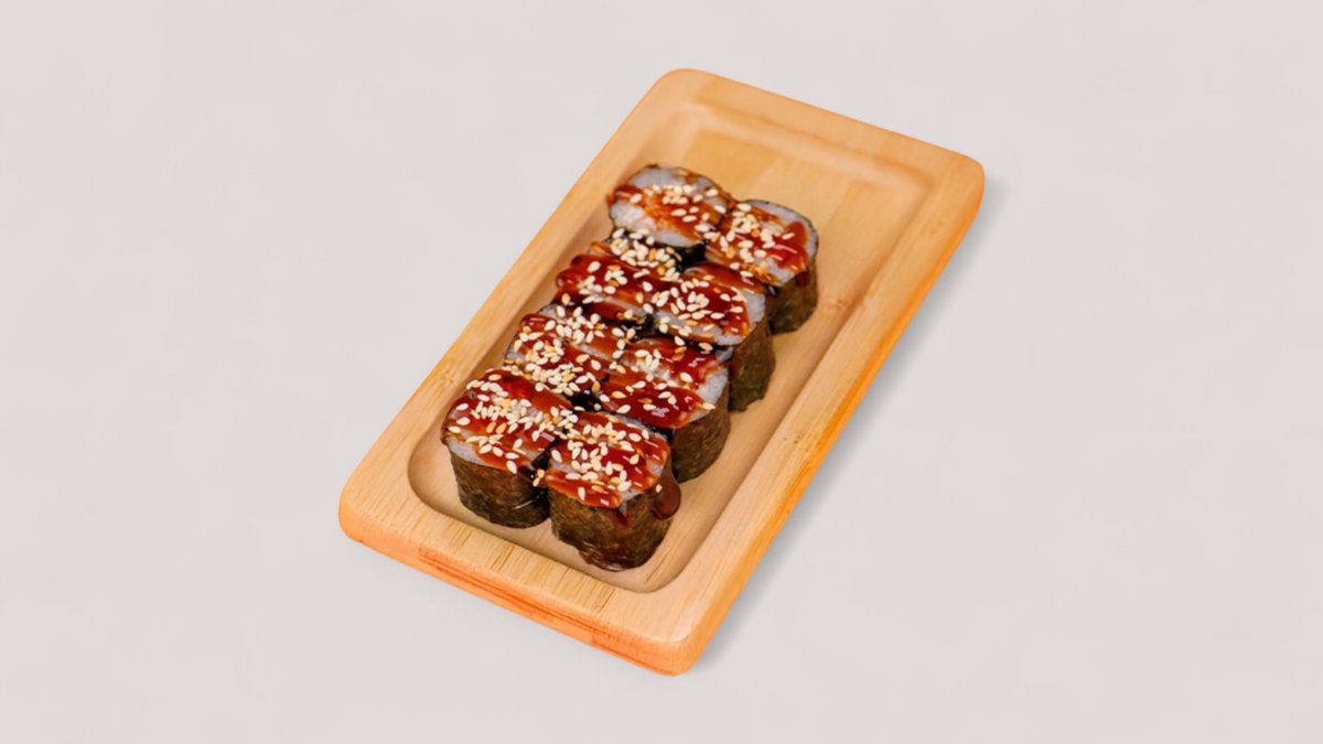 Угорь, унаги соус, кунжут, нори, рис