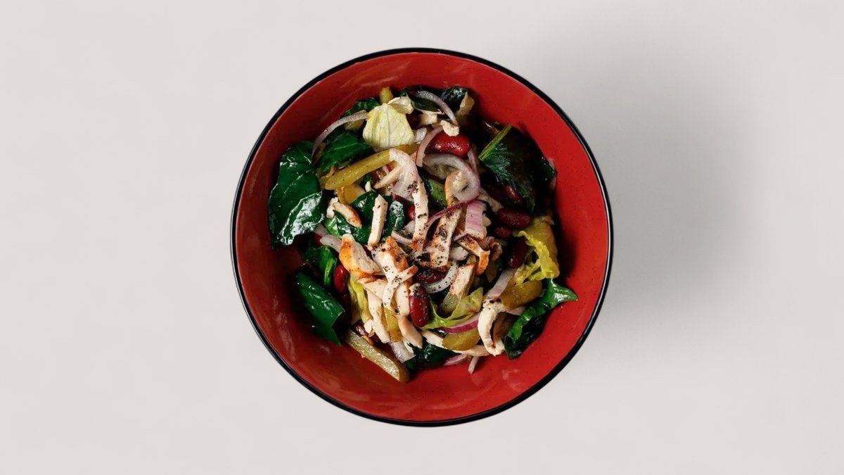 айсбег,шпинат,телятина,лук,огурцы,помидоры,болгарский перец,соус унаги,грецкий орех