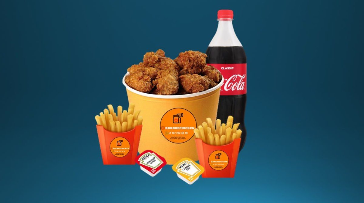 32шт сочных крыльев 2 порция фри кола 2л 1соус томатный 1соус сырный