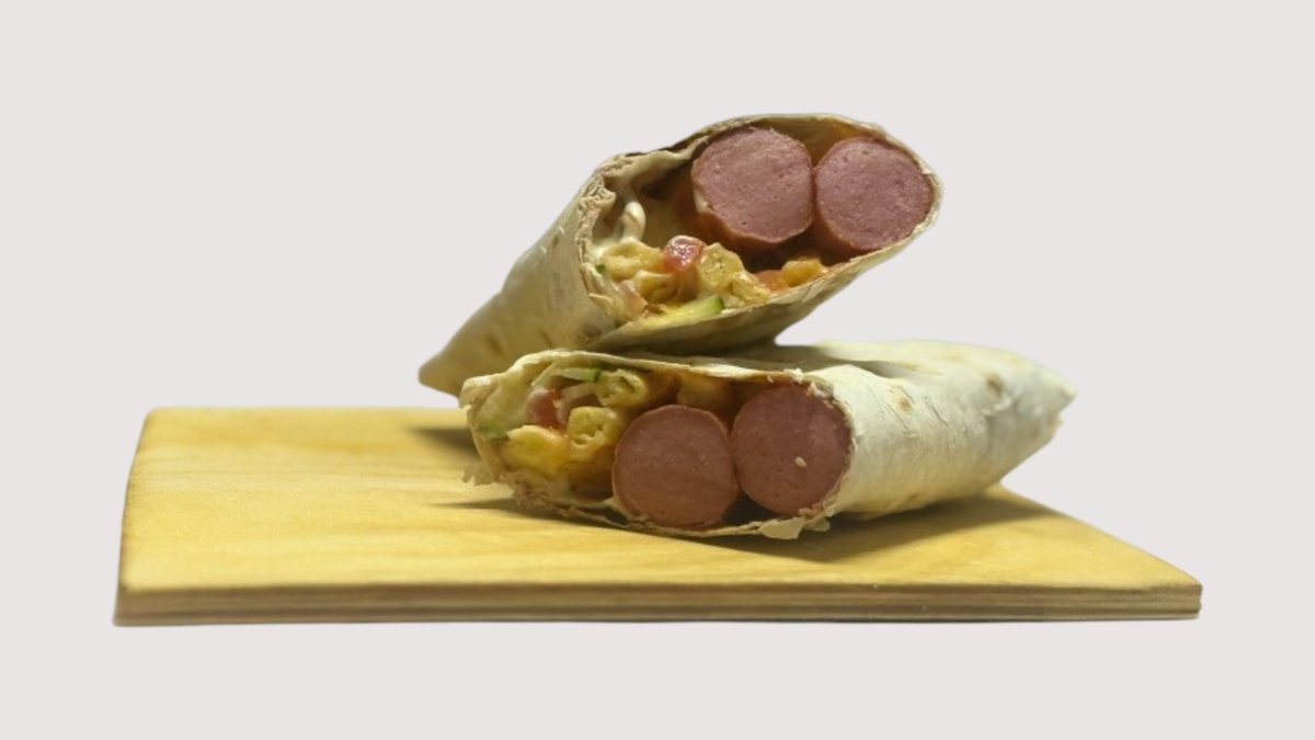 Лаваш, две сосиски, картофель фри, свежий огурец, морковь по-корейски, лук репчатый, соусы