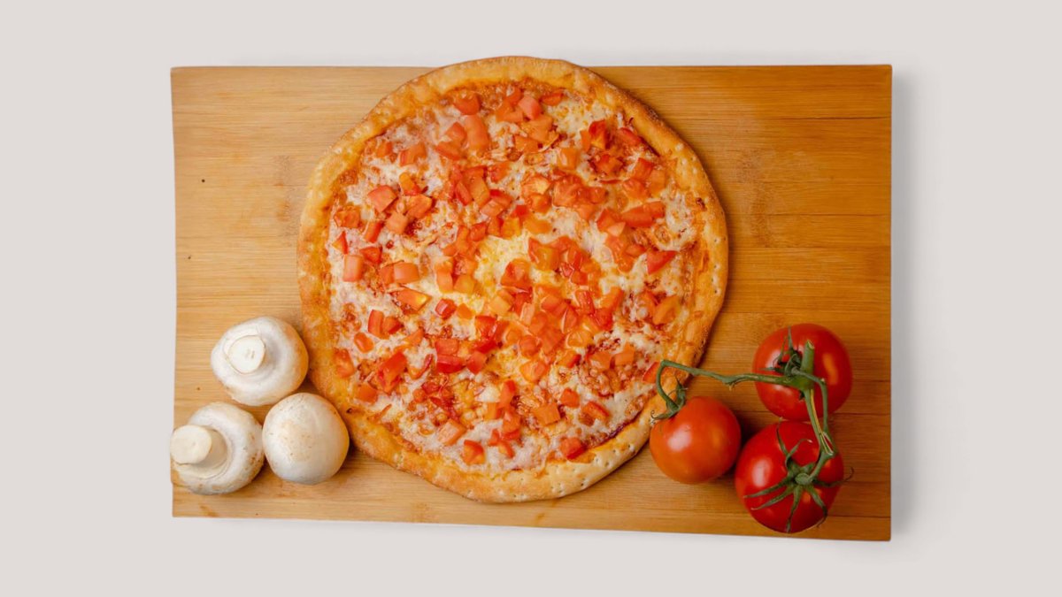 Тесто, красный соус, моцарелла, помидор Диаметр - 30 см.