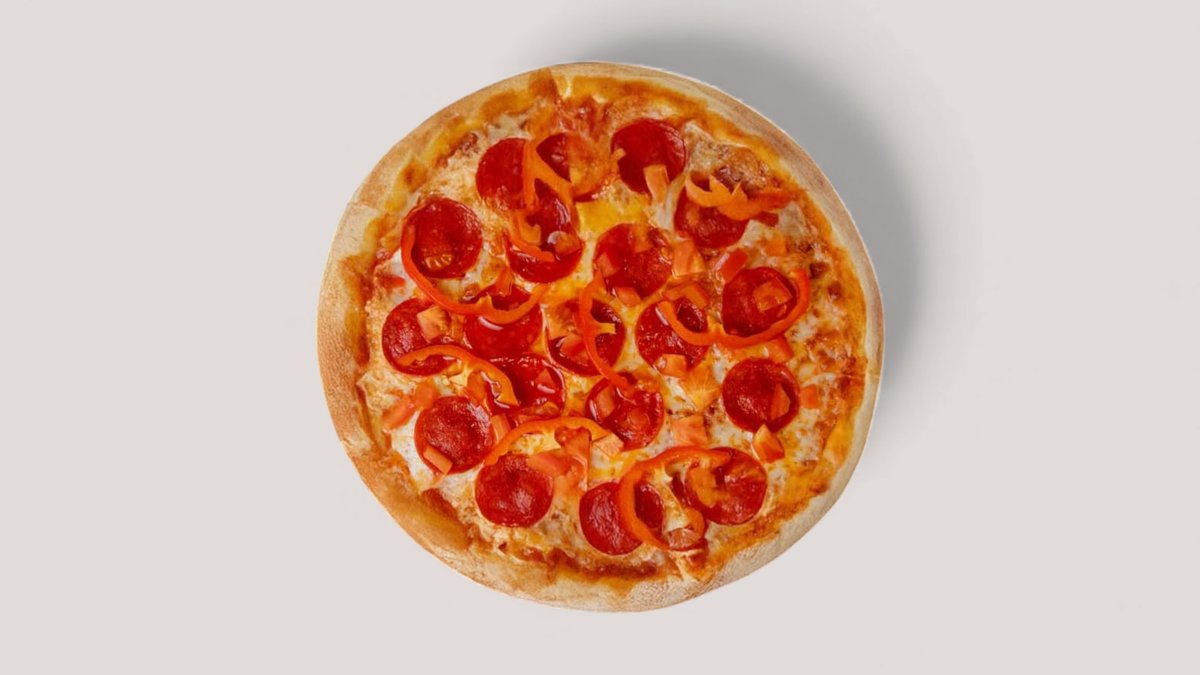 тесто, красный соус, моцарелла, пепперони, помидор, паприка Диаметр -30 СМ