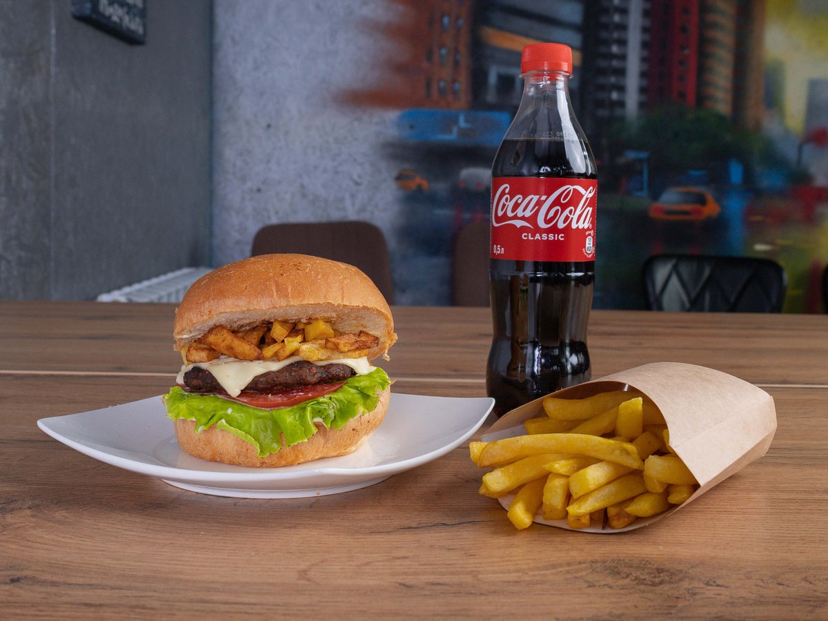 Чизбургер, Картофель фри, Coca cola 0,5 л.