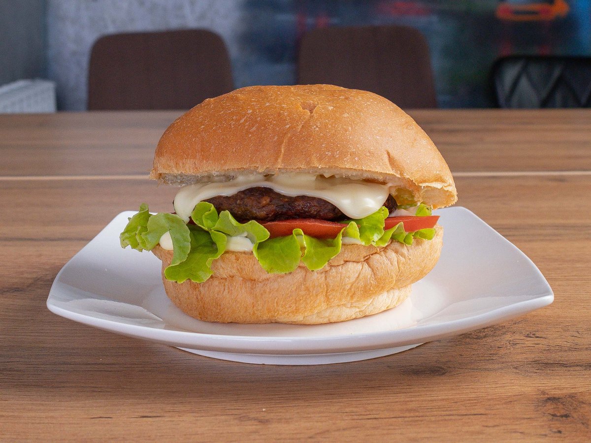 лист салата, помидор, котлета говяжья, сыр, фирменный соус