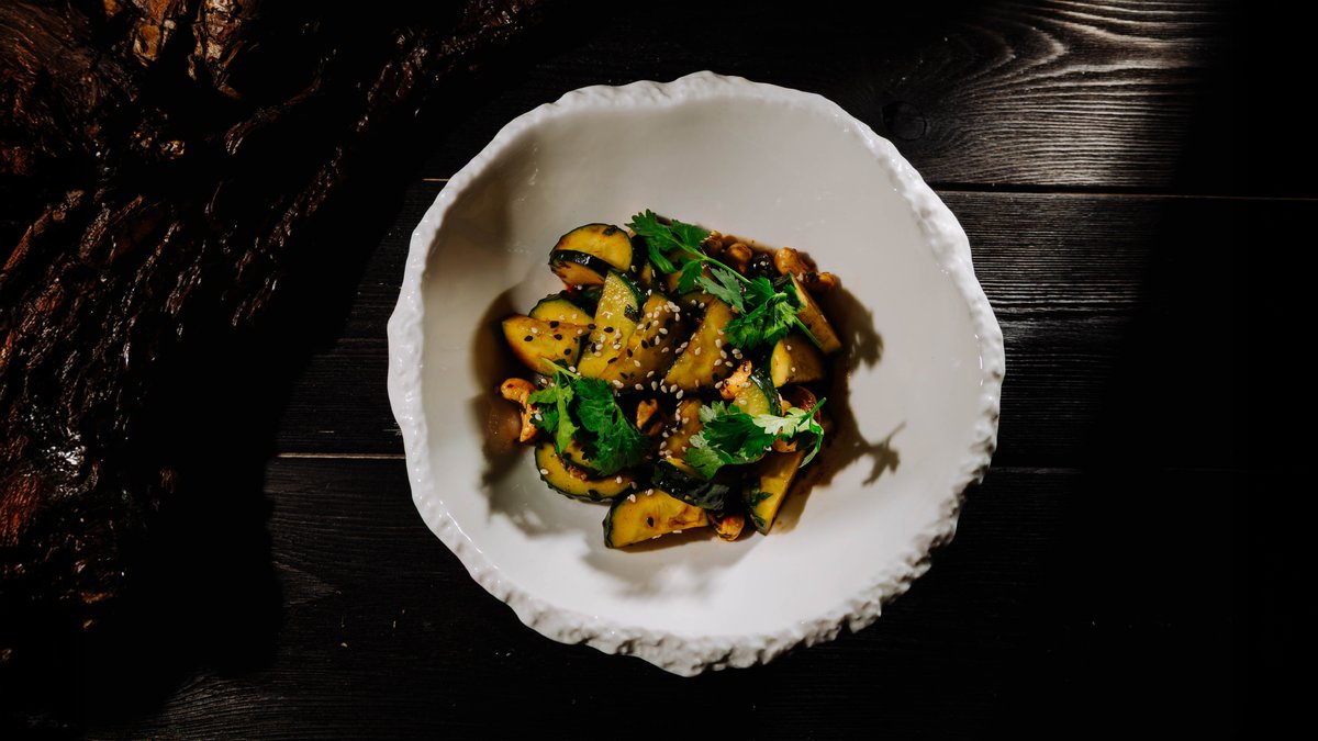 Пикантные огурцы,обжареный кешью в сочетании с азиатской заправкой, идеально к мясному блюду