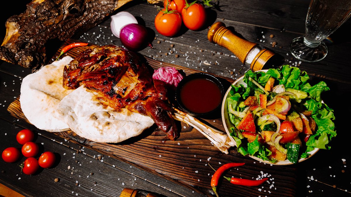 Лопатка молодого ягнёнка, медленно томлённая в собственном соку на протяжении 8 часов, раскрывает всю глубину вкуса и мягкость мяса. Подаётся с домашней питой, салатом из хрустящих овощей и ароматным соусом песто, создающим идеальный баланс свежести и насыщенности. 2,5 кг в сыром виде.