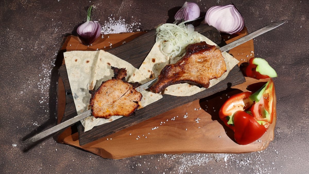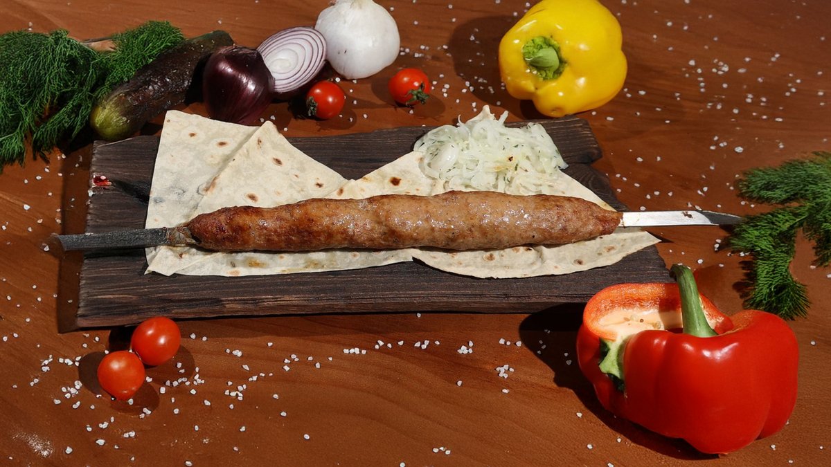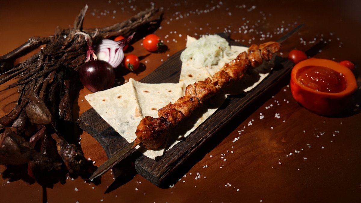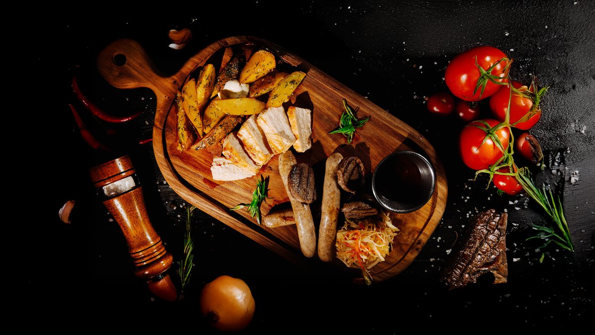 Ассорти из бараньих колбасок, куриного филе и говяжьей вырезки. Подаётся с квашеной капустой, деревенским картофелем и соусом bbq