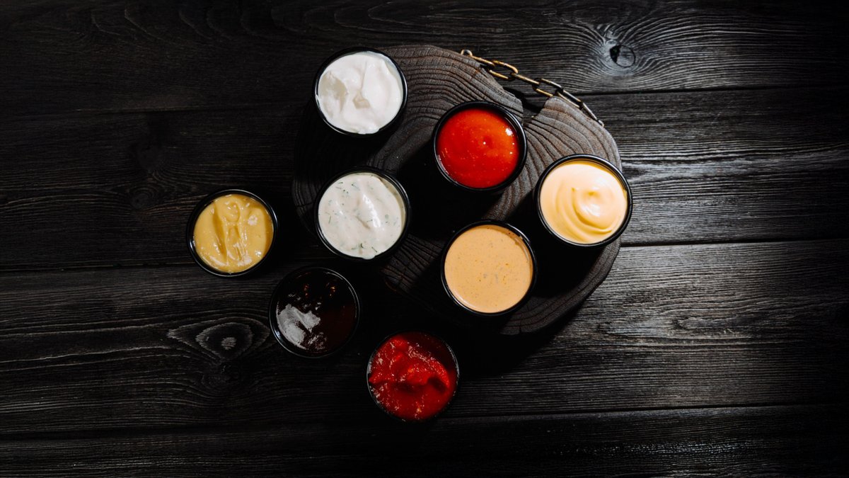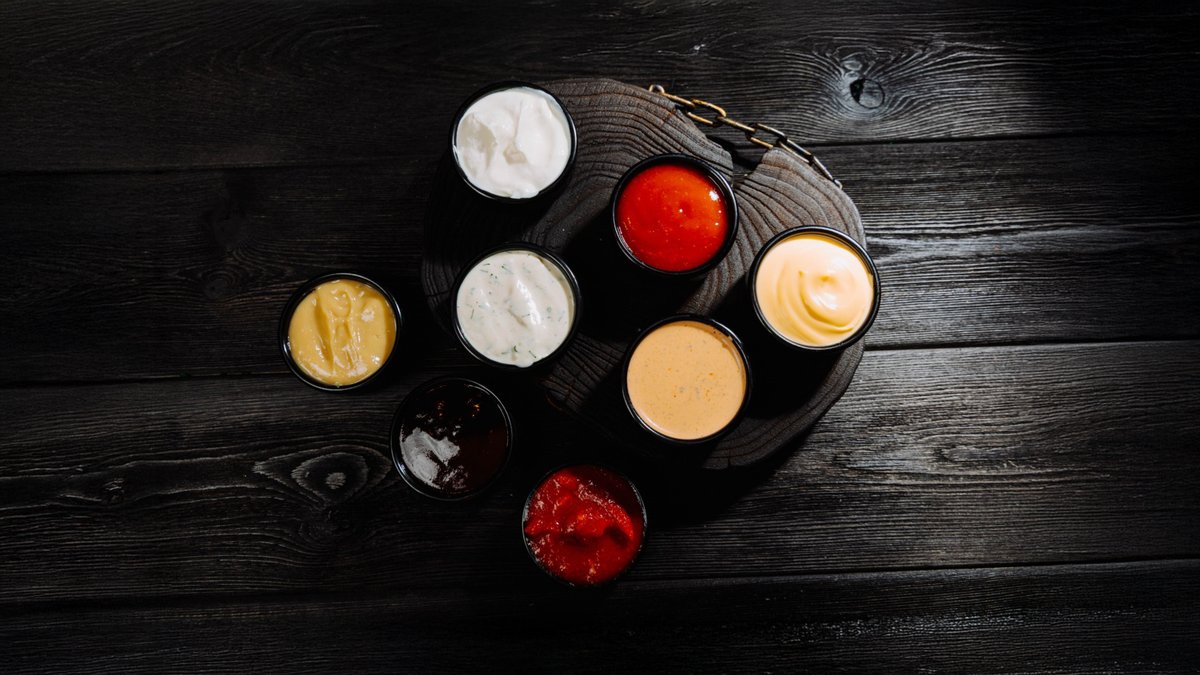 хлеб бородинский, соус чесночный, соус сырный