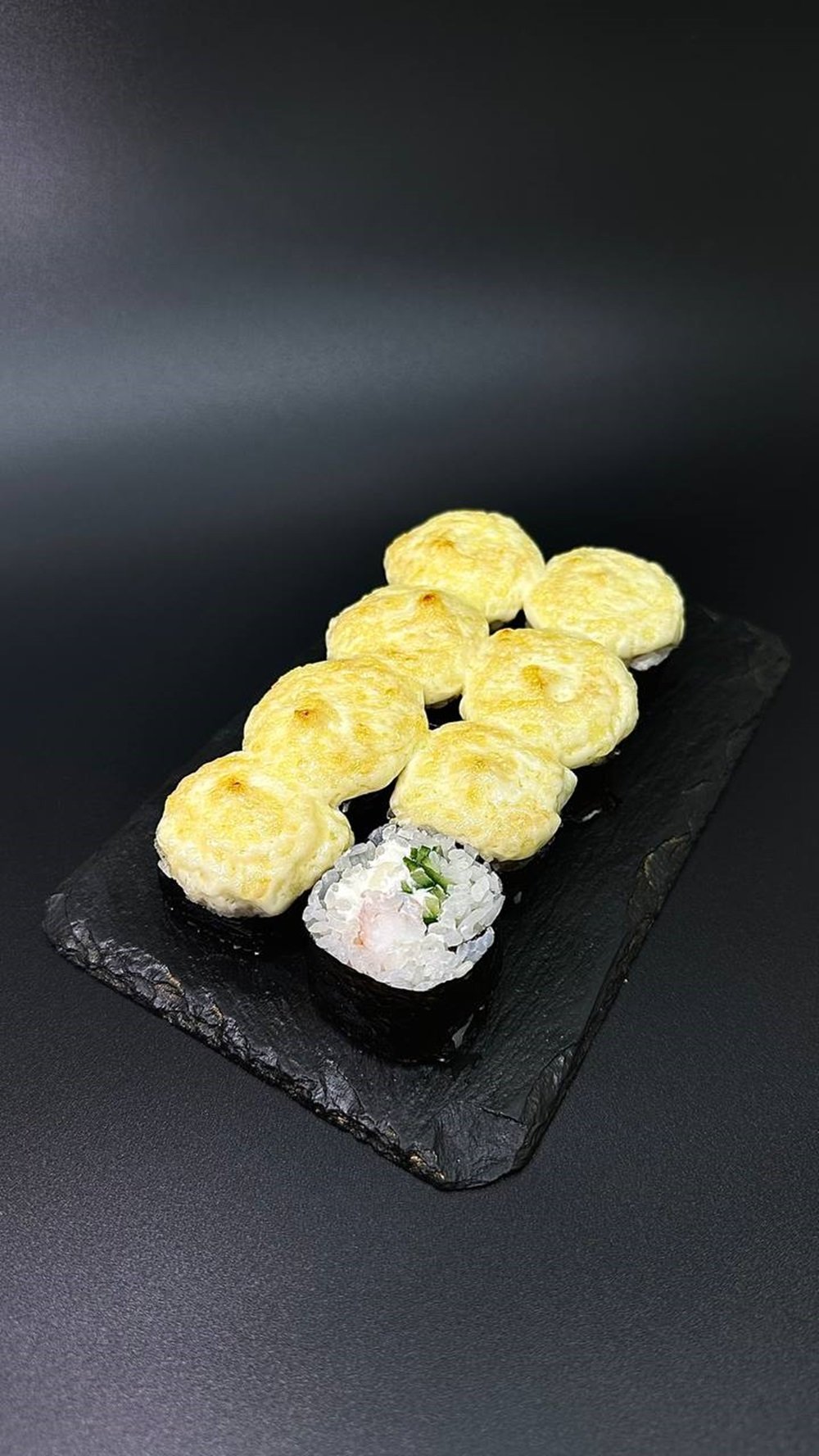 Нори Рис заправленный Эсколар копченный (Масляная рыба) Болгарский перец Лук зеленый Шапка Сырная для запекания Шапка Яки/Острая для запекания