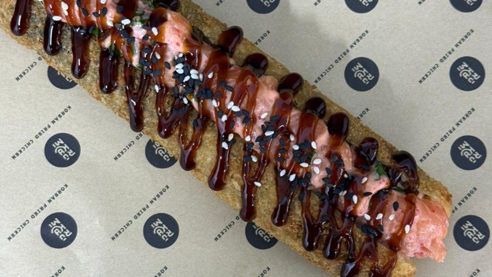 Нори Рис заправленный Помидор Сочная Курица Спайси соус Панко. В соусе содержится икра тобика (Аллерген)