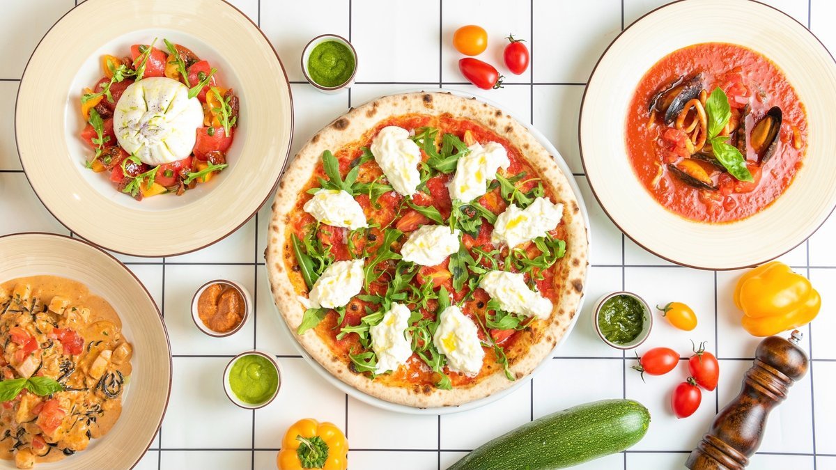 Пицца, паста, антипасто, ыстық және балалар тағамдары