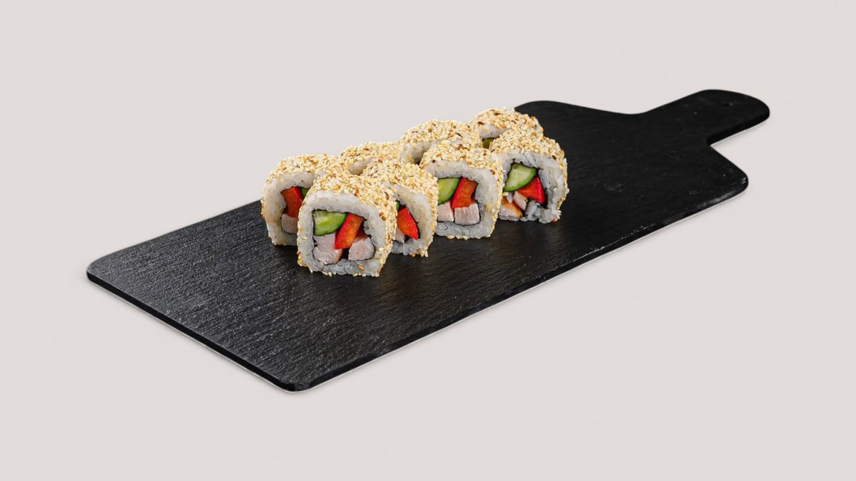 нори,рис,творожный сыр,огурец,помидор,курица