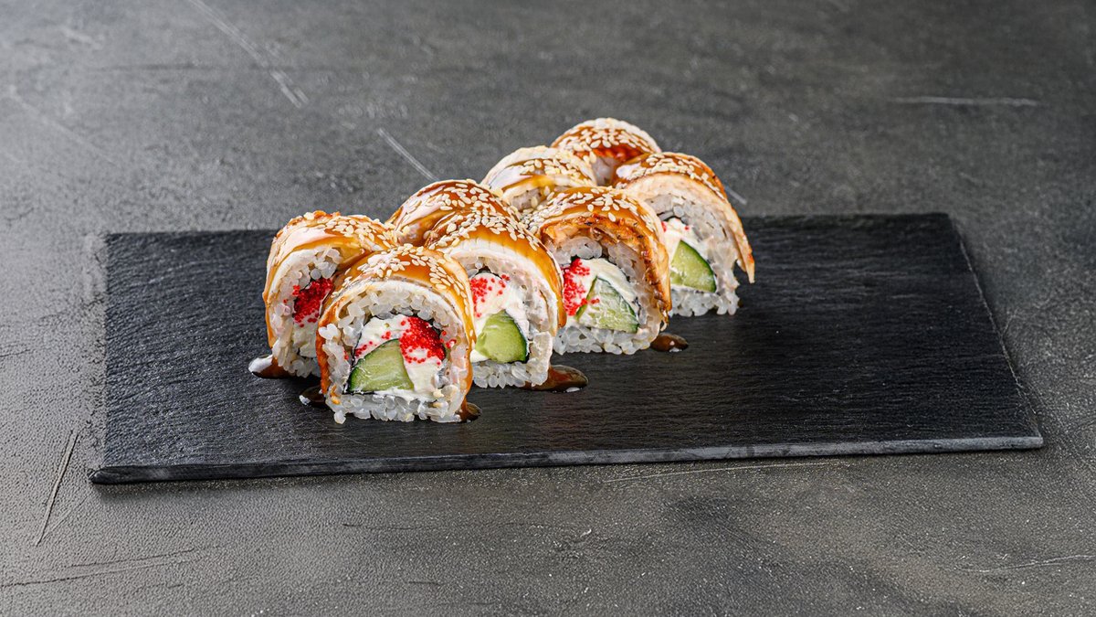 нори,рис,угорь,творожный сыр,огурец,тобика