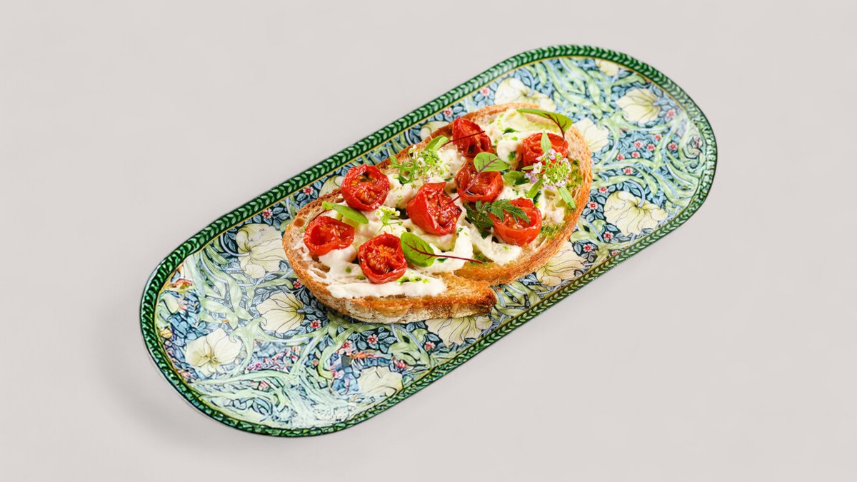 Багет с томатами конфи, нежной страчателлой и кремом бальзамик.