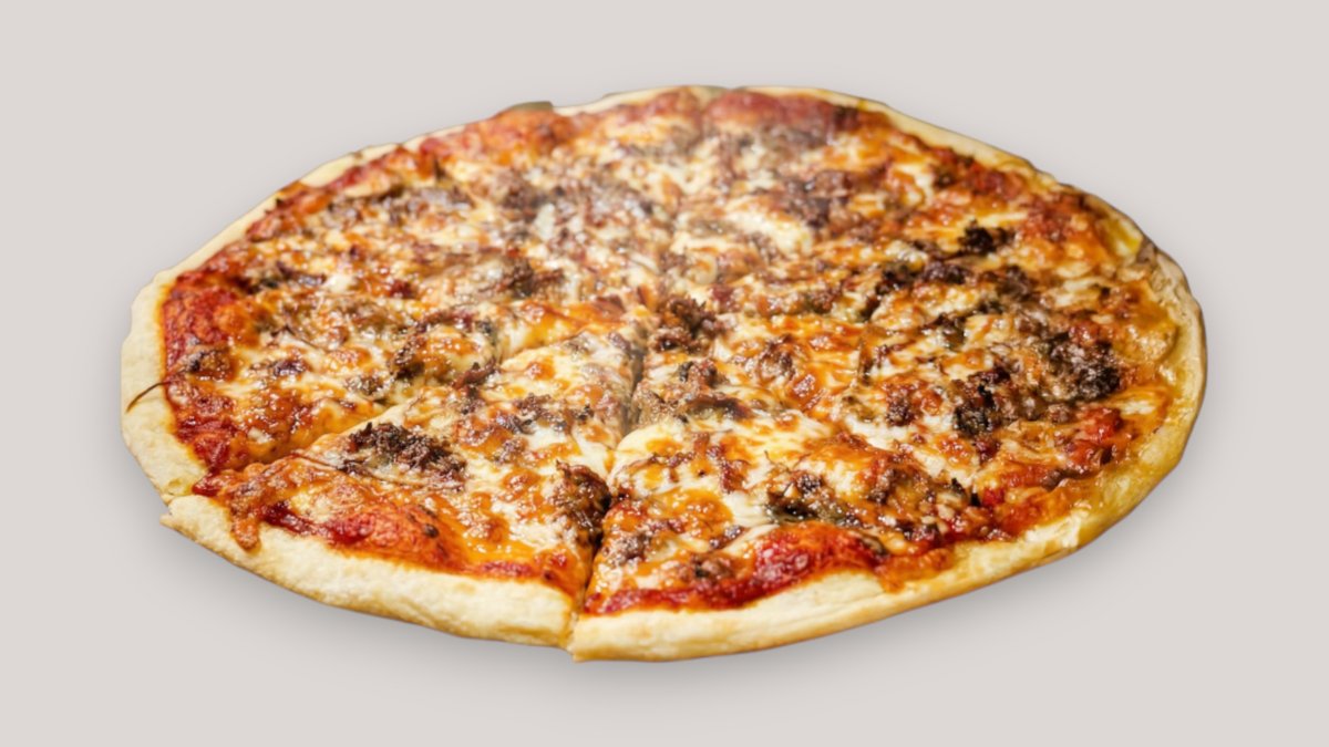 Сыр моцарелла, сыр гауда , колбаска говяжья, соус для пиццы, тесто пицца