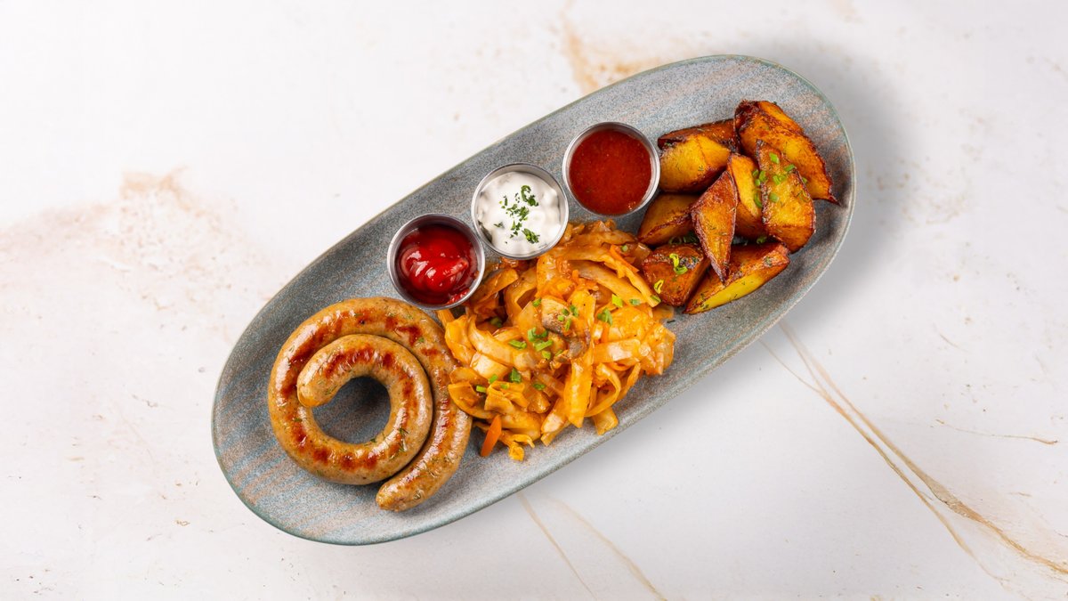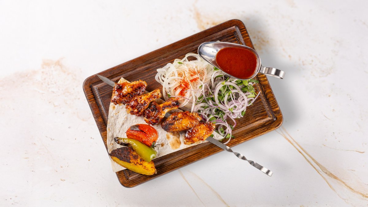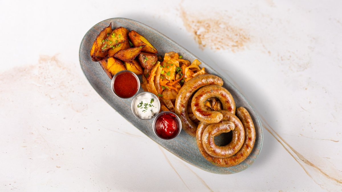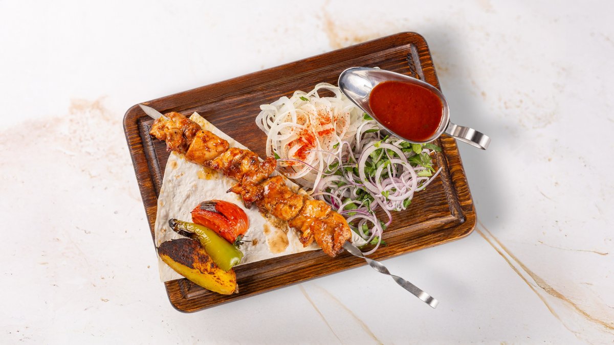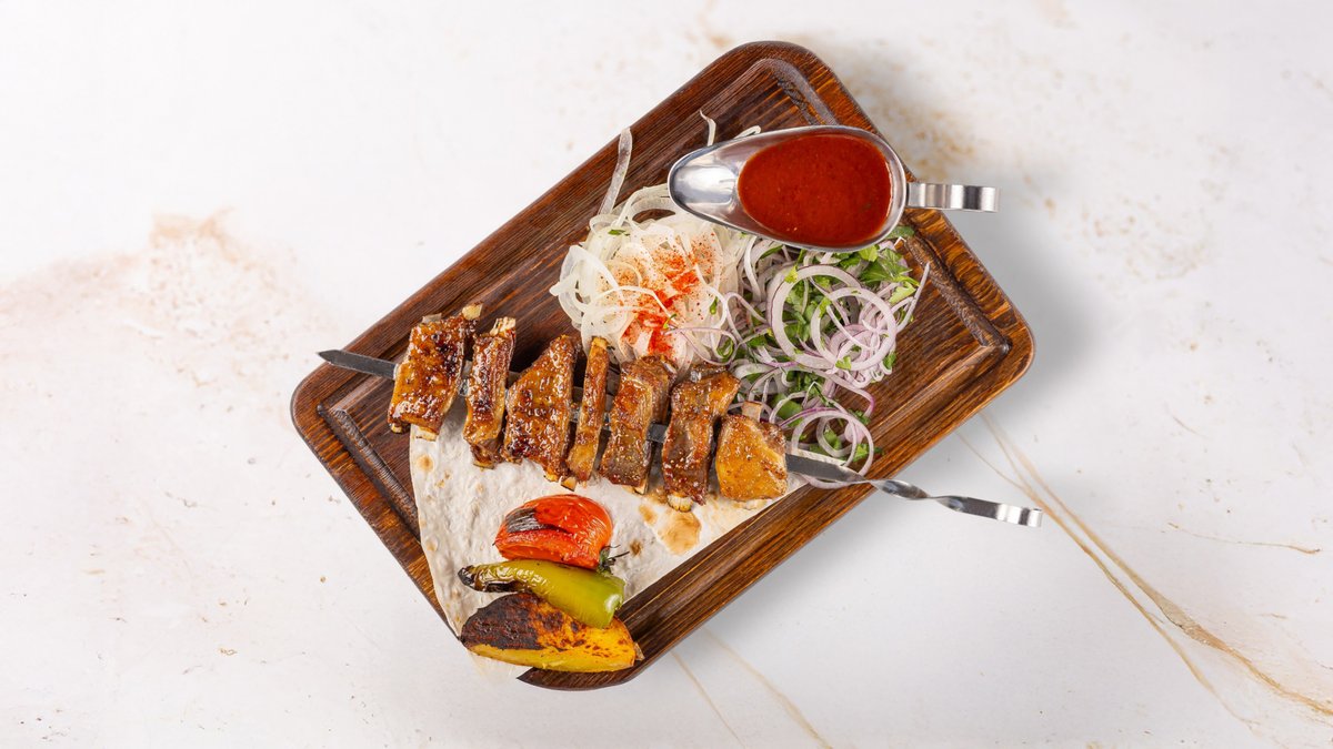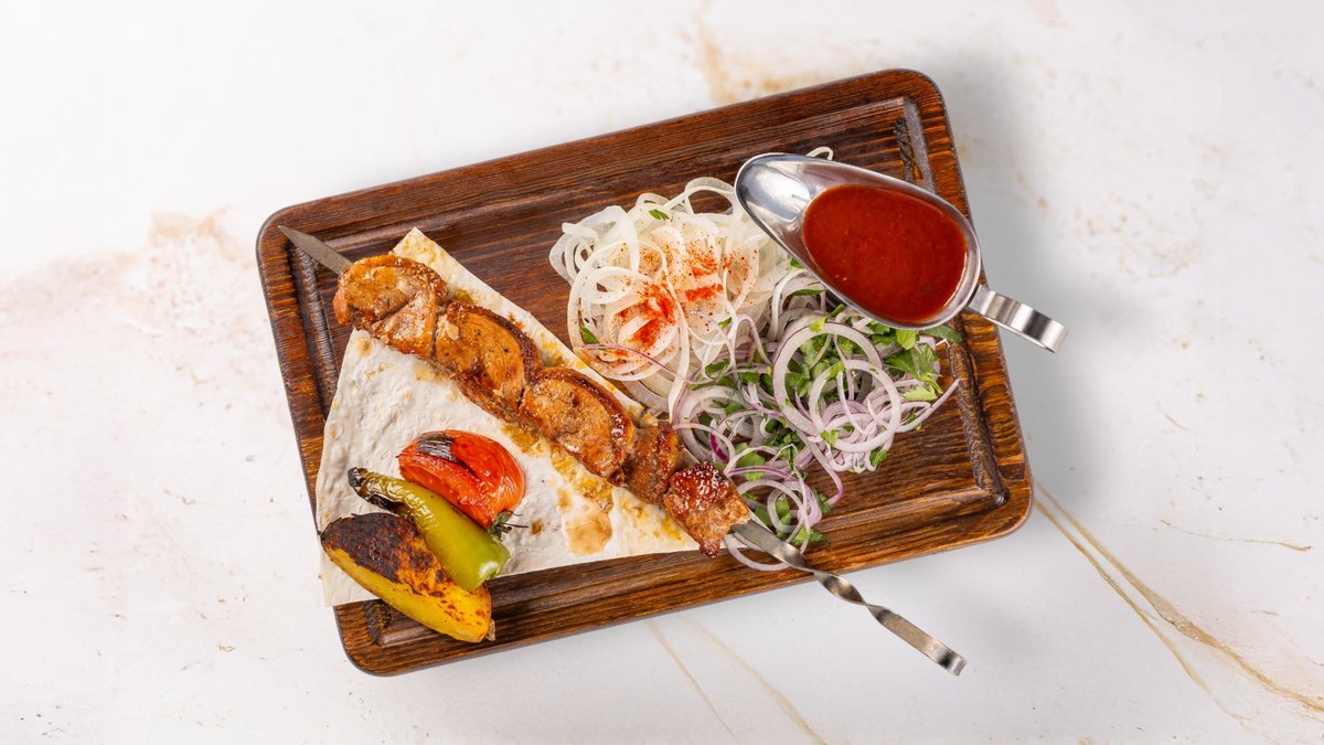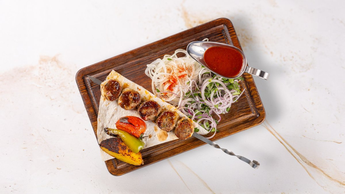 Delicious kebabs and juicy sausages