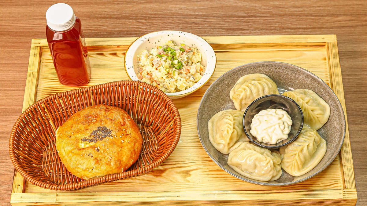 манты 5 шт оливье компот 0.3 л лепешка 1 шт