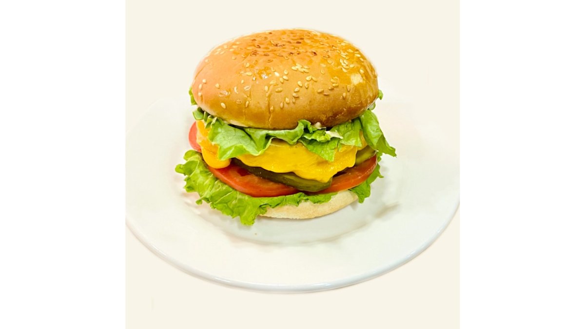 Булочка фирменного приготовления, куриная котлета, сыр "Чердер", сол.огурцы, св.помидор, салат "Айсберг"