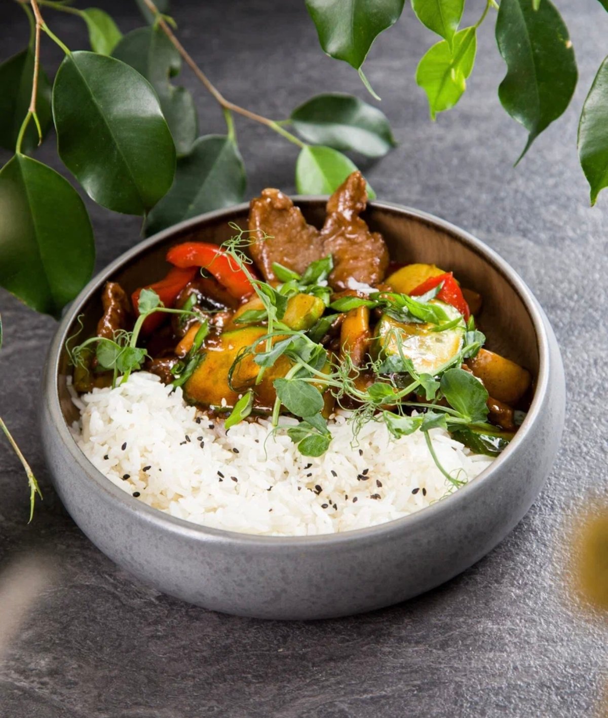 Телятина с овощами и рисом