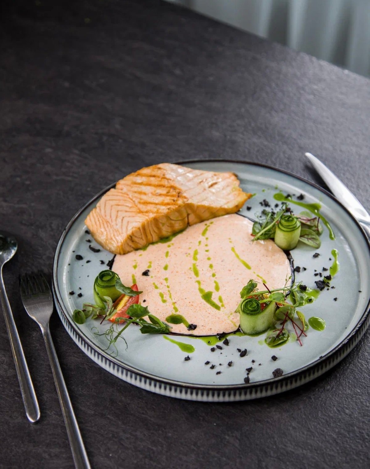 Стейк из семги под белым соусом