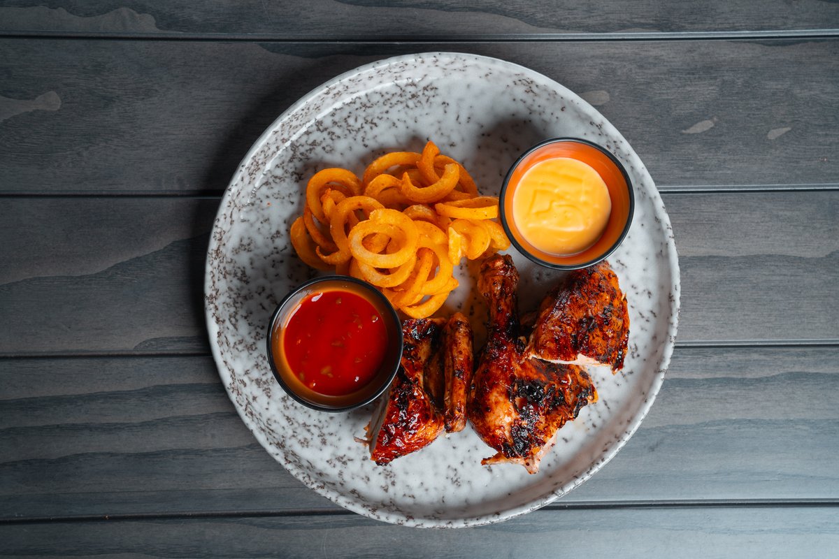 Запеченный цыпленок с керли фрайс