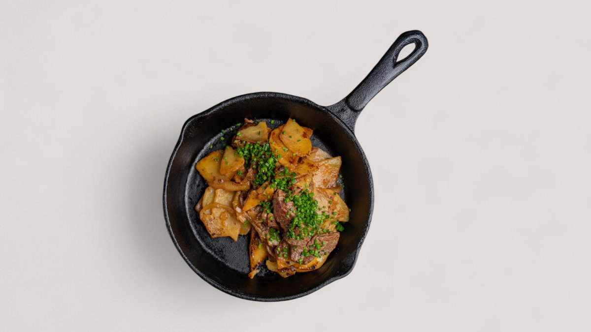 Мясо на сковородке с картошкой