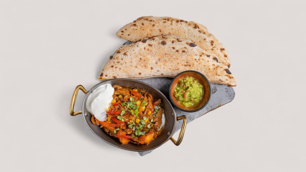 говяжья вырезка,кукуруза,болгарский перец,лук красный,острый соус,сметана,гуакамоле,пита