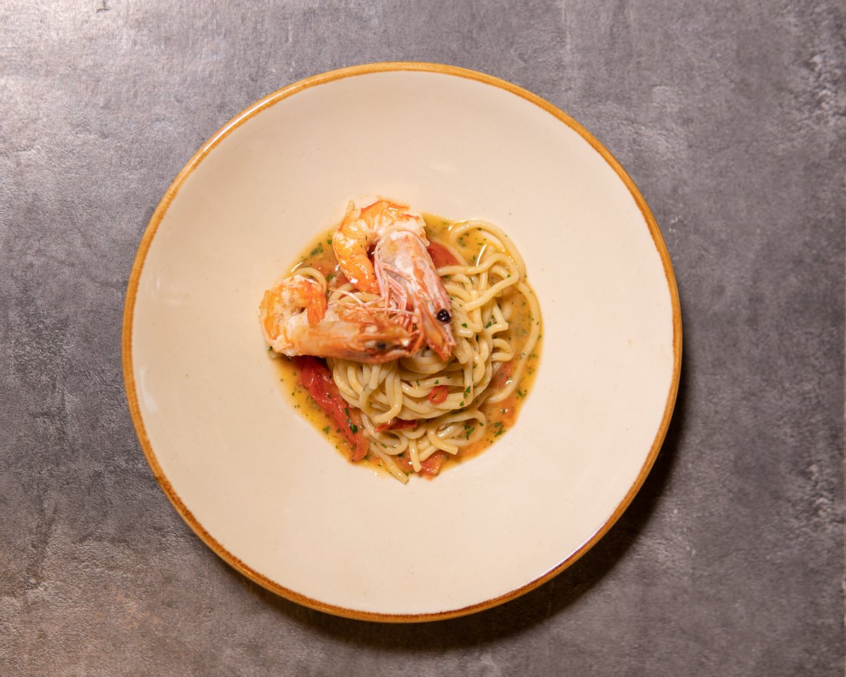 томаты, лангустины, чиабатта, базилик, болгарский перец, оливки, каламаты, каперсы