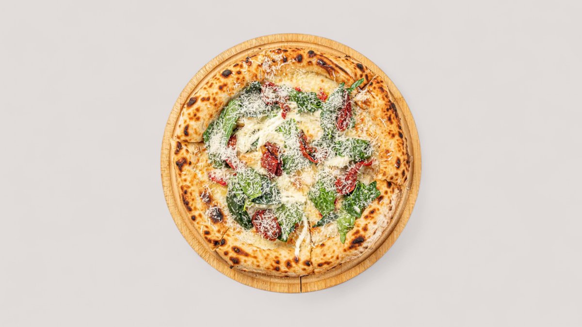 баклажан, сырный соус, маринара, томаты, базиликовое песто, запеченный пере, пармезан, чиабатта