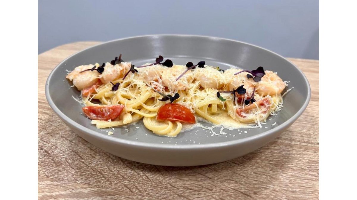 Паста лингвини, креветки,подаётся в сливочном соусе