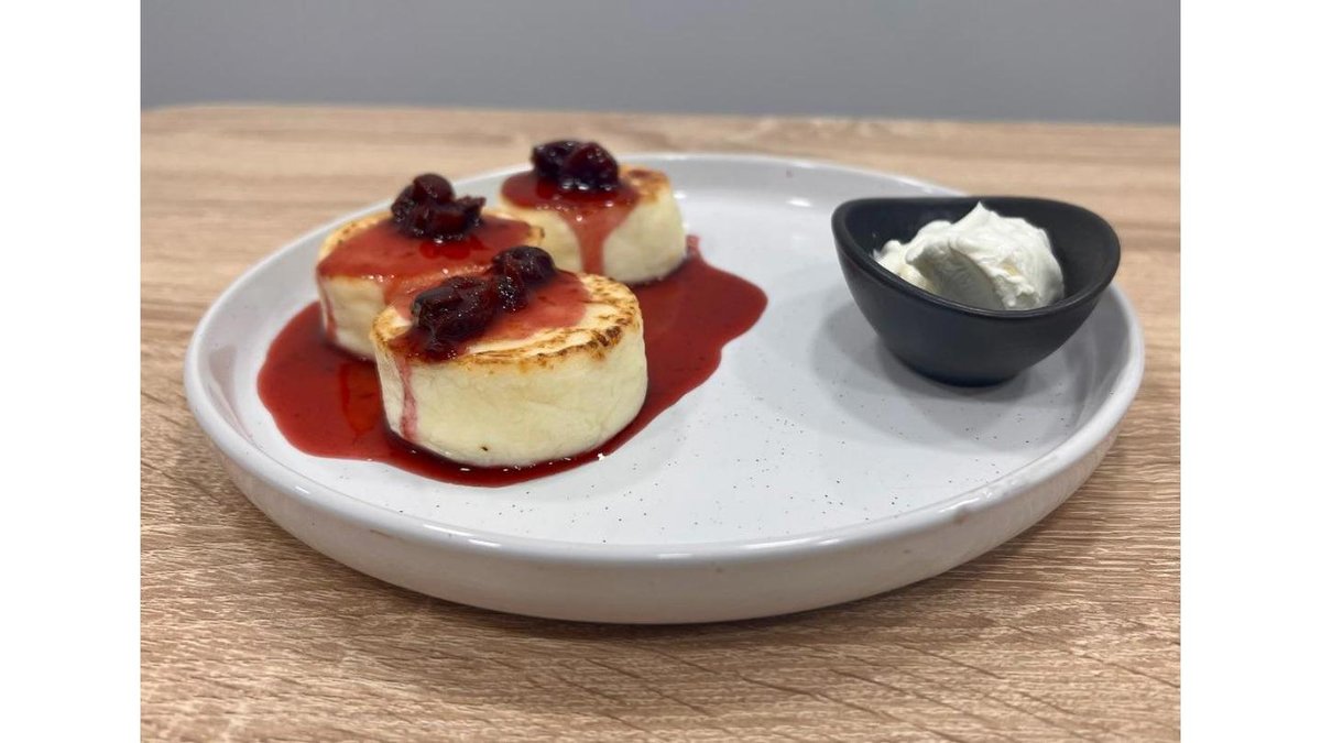 Творог, вишнёвый джем, сметана