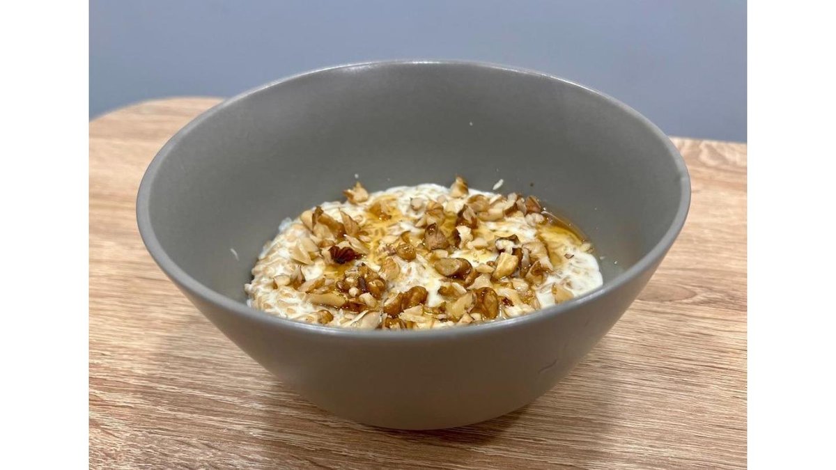 Каша овсяная с грецким орехом и мёдом коровьем молоке на овсяном молоке