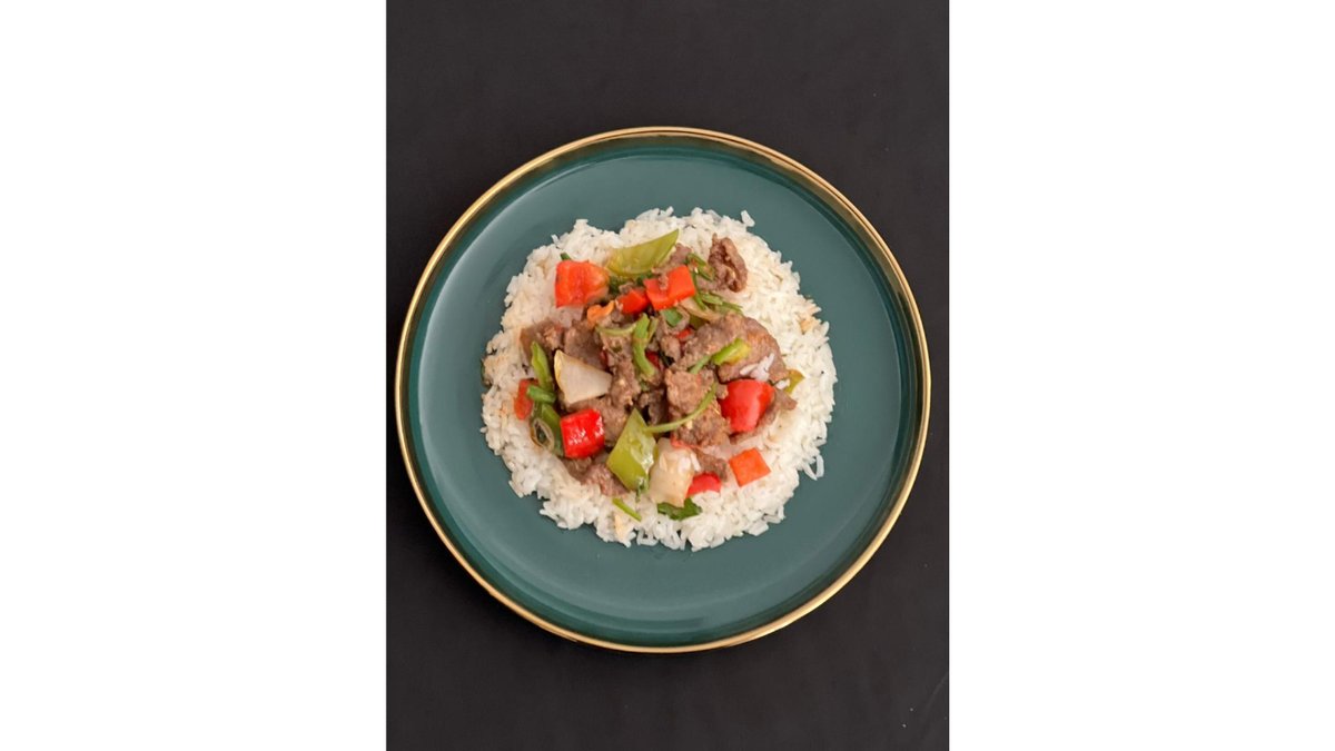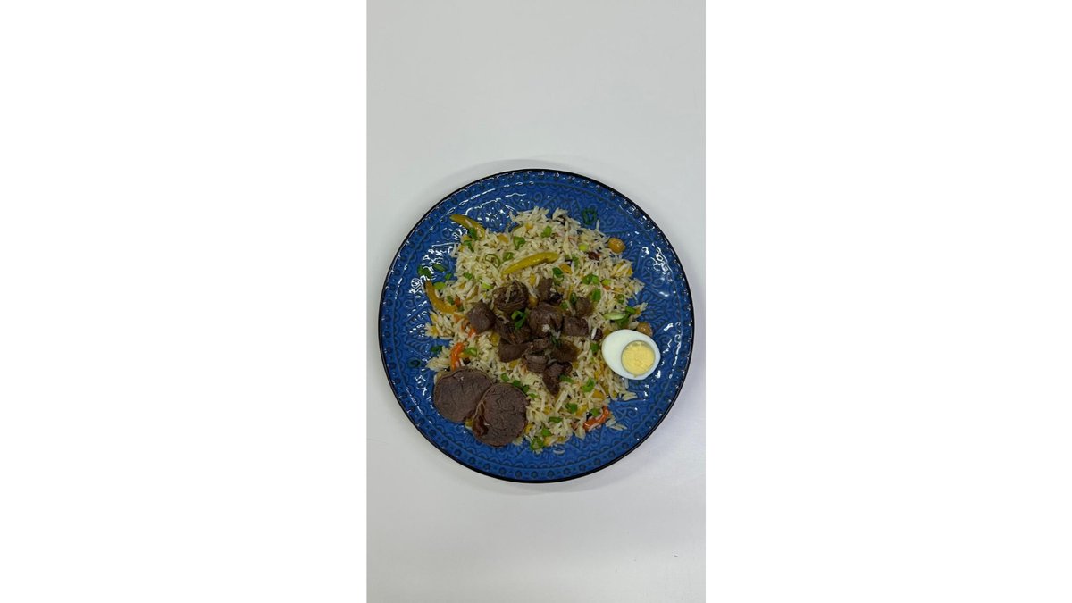 Уйгурское блюдо с нежной говядиной, рисом и овощами