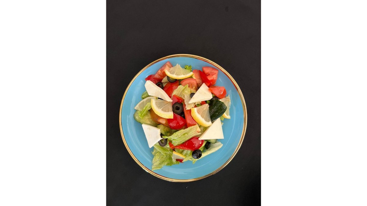 Салат со свежими овощами, сыром и оливками