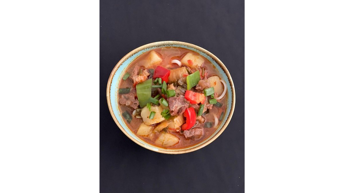 Уйгурское блюдо с нежной говядиной, домашним тестом и овощами