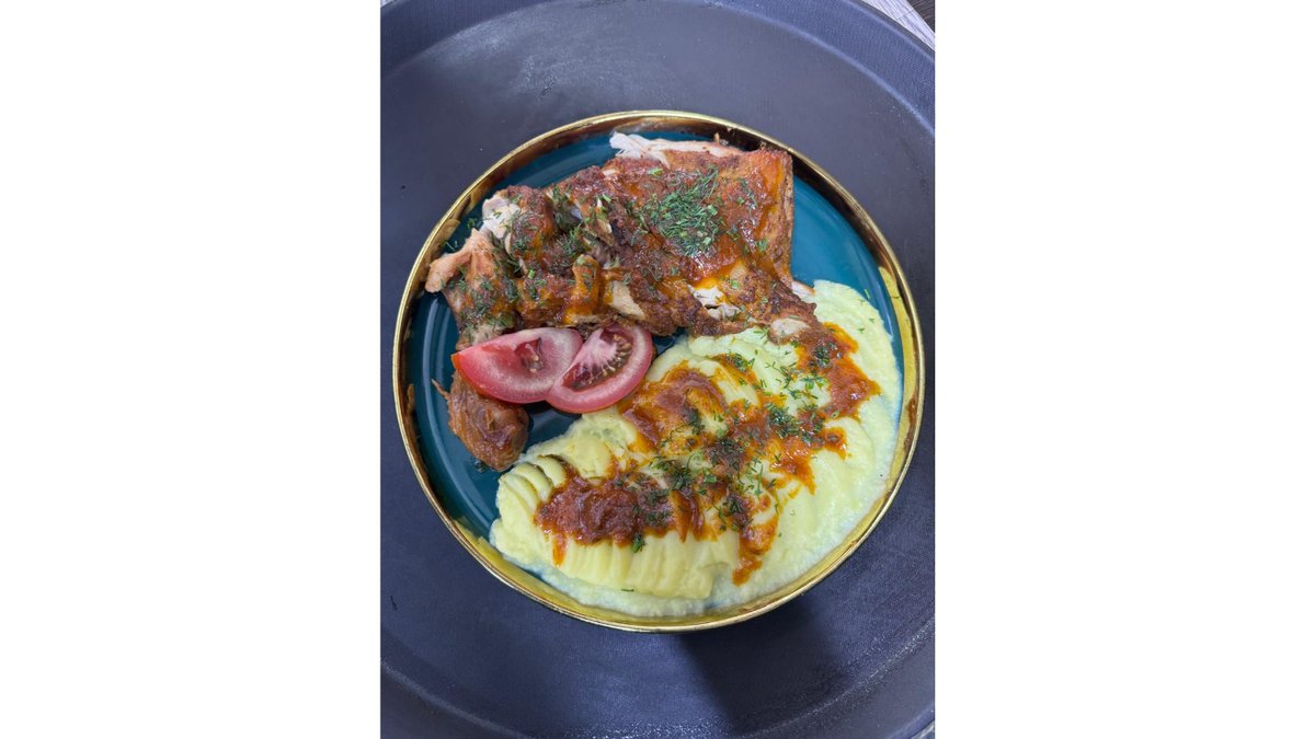 Американская окорочка с пюре и подливой