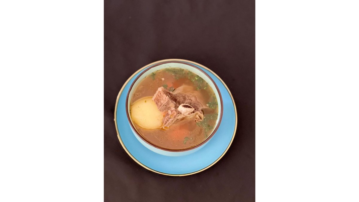 Наваристый бульон с нежной бараниной на кости и с овощами