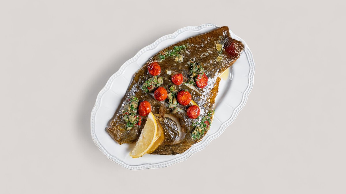 тюрбо,помидор черри,соль,перец,олив масло,лук,чеснок,вино белое,каперсы,сливочное масло,чили перец,лимон.